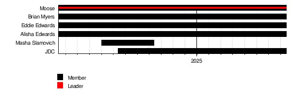 In April 2024, The System encouraged Masha Slamovich to team up with Alisha Edwards to challenge Spitfire (Dani Luna and Jody Threat) for the TNA Knockouts World Tag Team Championship. On May 3 at Under Siege, Slamovich and Alisha defeated Spitfire to win the TNA Knockouts World Tag Team Championship.[11] On June 14, at Against All Odds, Dirty Dango allied himself with The System after costing the Nemeth Brothers their tag team title shot against Myers and Edwards, after which he changed his name to Johnny "Dango" Curtis (JDC).[12][13] On July 20 at Slammiversary, Edwards and Myers lost the TNA World Tag Team titles to ABC, while Moose lost the TNA World title in six-way elimination match to Nic Nemeth, he was eliminated second by Joe Hendry. On September 14 at Victory Road, The Malisha was defeated by Spitfire for the TNA Knockouts Tag Team Championship, After the match Alisha Edwards and Tasha Steelz turned on Slamovich and attacked her causing her to turn face, while Myers and Edwards defeated ABC to regain the TNA World Tag Team Championship.[14][15] At the 2024 Bound for Glory pay-per-view, Eddie Edwards and Bryan Myers lost the TNA World Tag Team Championships to The Hardys in a Full Metal Mayhem match.[16] This was a three way tag team match that also involved ABC. On the November 7 episode of Impact, Moose won the TNA X Division Championship for the first time in his career.[17] On November 29 at Turning Point, Moose successfully defended the X Division Championship against Laredo Kid. Myers competed in the Thanksgiving Turkey Bowl match, where he was pinned by Joe Hendry and per the stipulation, he was forced to wear a turkey suit. This match also involved Eric Young, Hammerstone, John Skyler, and Rhino, and Edwards unsuccessfully challenged Nic Nemeth for the TNA World Championship that night.[18] Over a month later on the December 5 episode of Impact!, The System would invoke their rematch clause to challenge The Hardys for the titles, only for the match to end via disqualification due to Alisha Edwards interfering. The System continued to beat down The Hardys, ending when they put the champions through a table.[19] As a result, TNA later announced that The Hardys and The System would face off once again for the TNA World Tag Team Championship at Final Resolution in a tables match.[20] At the event, Edwards and Myers failed to regain the TNA World Tag Team Championships while Moose successfully retained his TNA X Division Championship against Kushida.[21] At Slammiversary on July 20, 2025, Moose lost the TNA X Division Championship to Leon Slater and endorsed Slater post-match, reestablishing Moose as a face for the first time since 2018. At the same event, Eddie, Myers and JDC teamed with Matt Cardona to defeat NXT stable DarkState (Dion Lennox, Cutler James, Osiris Griffin and Saquon Shugars), with Myers, Eddie and JDC working the match as babyfaces.[22]