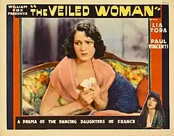 The Veiled Woman is a 1929 American Synchronized sound drama film directed by Emmett J. Flynn and starring Lia Torá, Lupita Tovar, and Walter McGrail, also featuring Bela Lugosi.[1] While the film has no audible dialog, it was released with a synchronized musical score with sound effects using the sound-on-film Movietone process. This film was initially advertised as being an All-Talking sound film, but at the last minute, the producer decided to film it as a synchronized sound film.