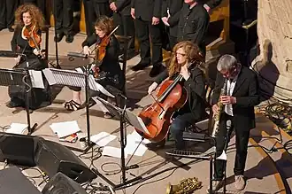 Music performed by Andy Sheppard (Tenor and Soprano Saxophone), John Parricelli (Guitar), Kuljit Bamra (Tabla and Percussion). Solo singers were Sianed Jones (Soprano), Katherine Zeserson (Alto) and Jonathan Baker (Bass). The Coutances Choir with The Voice Project Choir was conducted by Siân Croose.