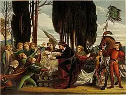 The brothers discover Elisa's plight and try to speak to the king but fail, thwarted by the rising sun. Even as the tumbril bears Elisa away to execution, she continues knitting, determined to continue up to the last moment of her life. This enrages the people, who are on the brink of snatching and ripping the shirts into pieces when the swans descend and rescue Elisa. The people interpret this as a sign from Heaven that Elisa is innocent, but the executioner still prepares for the burning. When Elisa finishes the last shirt, she throws the shirts over the swans, and her brothers return to their human forms. The youngest brother has a swan's wing instead of an arm, as Elisa did not have time to finish one sleeve of his shirt. Elisa is now free to speak and tell the truth but faints from exhaustion, so her brothers explain. As they do so, the firewood around Elisa's stake miraculously takes root and bursts into flowers. The king plucks the topmost flower and places it on Elisa's chest. She is revived by the white flower, and the king and Elisa are married.
