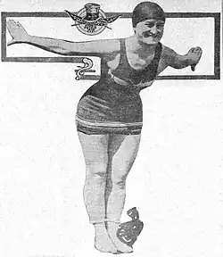 Payne had to take a leave of absence from her work as the chief telephone switchboard operator for the City of Portland to compete in the 1920 Olympics. The city council passed a resolution that paid her for the two and a half months she missed for competition, which totaled to $250.[16] According to a 1922 profile of Payne by The Oregonian, she was not a naturally skilled diver and required significant training to reach the Olympic level. She was introduced to swimming at the YWCA by instructor Millie Schloth and later witnessed a diving performance by Constance Meyer, which sparked her interest in the sport. She trained to dive at the Multnomah Athletic Club under instructor Jack Cody. Following the 1920 Olympics, Payne became the swimming and diving instructor at the Portland YWCA.[4] Her work at the YWCA involved training girls under six for various aquatic sports including synchronized swimming and diving. In 1922, Payne was hired by the Windemuth Bath House on Ross Island to instruct their swimming and diving courses.[17] Payne used Jantzen Swimwear and was mentioned by name in company advertisements following her Olympic bronze medal victory.[18]