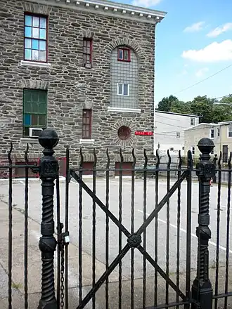Built between 1901 and 1902, this historic structure is a two-story, five-bay, stone building that was designed in the Colonial Revival style. It features a portico with Doric order columns, arched openings, and a modillioned cornice and was used for industrial purposes during the mid-twentieth century. It is now home to the Pentecostal Faith Assembly Church.[2]