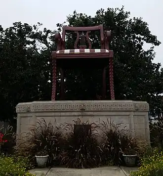 Thomasville is commonly referred to as the "Chair Town" or "Chair City", in reference to a 30-foot (9.1 m) landmark replica of a Duncan Phyfe armchair that rests in the middle of the city. The original "Big Chair" was constructed in 1922 by the now-defunct Thomasville Furniture Industries (formerly the Thomasville Chair Company) out of lumber and Swiss steer hide to reflect the city's prominent furniture industry. However, this chair was scrapped in 1936 after 15 years of exposure to the weather. In 1951, a larger concrete version of the chair was erected with the collaboration of local businesses and civic organizations and still remains today. The Big Chair gained national attention in 1960 when then presidential candidate Lyndon B. Johnson greeted supporters on the monument during a campaign whistle stop.[8] Although larger ones have been built, many Thomasville residents still boast that the Big Chair between the two Main Streets is the "World's Largest Chair".