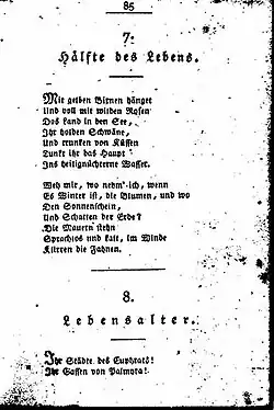 German Wikisource has original text related to this article: Hälfte des Lebens- Wenn aus der Ferne, Project Gutenberg