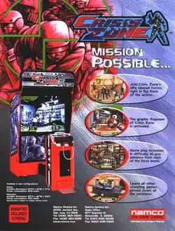 Crisis Zone is a 1999 light-gun shooter video game developed and published by Namco for arcades. It is a spin-off of the Time Crisis series.