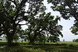 The lake was restored in 1871. The embankment (or bund) on the southern shore supports the Tissa-Kataragama road (B464), which is lined by old Indian rain trees planted by the British to provide shade.[1]