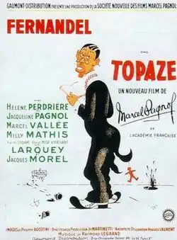 Topaze is a 1951 French comedy film directed by Marcel Pagnol and starring Fernandel, Hélène Perdrière and Marcel Vallée.[1] It is based on Pagnol's own 1928 play of the same name, which has been adapted for the screen a number of times including a 1936 film directed by Pagnol.