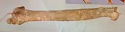 The bone remains of large mammals are, in general, dispersed, eroded and fragmented, evidencing trawling by fluvial transport, although in clay or silty sediments there are usually elements in anatomical connection, with little or no transport (primary accumulation), and without predators or scavengers, even the skeleton of an elephant specimen (in the so-called "α" concentration) is practically complete.[27] On the other hand, there is evidence of human manipulation in some elephant bones: certain fractures and cut marks by lytic instruments for dying.[29]