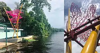 Trees native to the forests upland to the southwest are Apeiba tibourbou, Astronium graveolens, Brosimum alicastrum, Carapa guianensis, Cordia alliodora, Crescentia cujete, Croton niveus, Dipterix oleifera, Ficus insipida, Hura crepitans, Hymenolobium mesoamericanum, Jacaratia spinosa, Lecointea amazonica, Manilkara zapota, Spondias mombin, Virola sebifera and Zigia longifolia.[11]