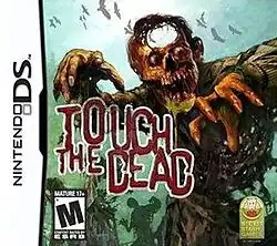 Touch the Dead (also known as Dead 'n' Furious in Europe) is a rail shooter/survival horror game for the Nintendo DS developed by French company Dream On Studio. The game was originally published by Virgin Play in Europe as one of their first published games, and was later co-published by Eidos Interactive (under the Secret Stash Games brand) and V.2 Play (being the only game Virgin Play released in North America) in North America. The game's North American box art was created by artist Arthur Suydam, famous for his work on the Marvel Zombies line of comics.