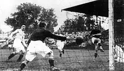 The final took place on 6 June in front of a crowd at the Saint-Ouen. Bologna imposed themselves physically and with their ferocious desire to win, but they also showed a sense of security that hindered Chelsea.[2] The first ten minutes saw the English side produce some brilliant and inspired moves, easily dribbling past their opponents. However, the Italians managed to organize themselves and took the lead when Carlos Reguzzoni opened the scoring after an error by full-back Ned Barkas. The now more determined Bologna quickly and clearly imposed themselves on the game, and just six minutes later Giovanni Busoni doubled their lead;