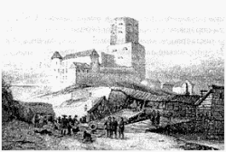 ![]() Vyborg Castle with Tower of St. Olav in the city map of Vyborg (1642) | |