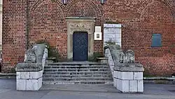 The entrance to the tower is guarded by a pair of stone lions carved at the beginning of the 19th century. They were brought to Kraków from the Classicist palace of the Morstin family in Pławowice during the renovations of 1961–1965, during which the bay windows on the second