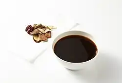 Another example of herbal medicine is cheongsimhwan (Korean: 청심환, lit. 'clear-mind pill'), a pill formulated with thirty odd herbs and other medicinal ingredients, including calculus bovis, ginseng, musk, and Chinese yam root.[15]