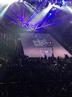 The University of Kentucky claims to have popularized the tradition of Midnight Madness with their version: Big Blue Madness. The tradition is where teams hold an inner-team scrimmage to display the talents of the team for the upcoming season (along with other performances). Kentucky claims to be the first school to host the event regularly, and in modern times, the first school to broadcast it live on ESPN.[14][15] Originally, the game was held at midnight on the very first day that the NCAA would allow teams to practice. In modern times, due to changes in NCAA policy, Big Blue Madness has been moved to an earlier time in the day. The University of Kentucky held the record for attendance at "Midnight Madnesses" with an attendance of 23,312 at Rupp Arena. Notable moments from Big Blue Madness include Drake performing in 2014 and "The John Wall Dance" in 2009. In 2024, the University of Kentucky debuted the first-ever college basketball court made of an ASB-Glass Floor.[16]