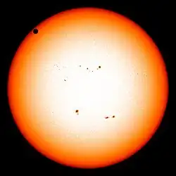 - ^ The black drop effect distorts the image of Venus at the observed edge of the Sun. The effect is caused by turbulence in the Earth's atmosphere, imperfections in the viewing apparatus, or the extreme change in brightness at the edge of the Sun.