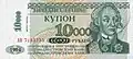 | 50,000 rubles | Blue | Alexander Suvorov overprinted on a 5 ruble note, with a holographic seal containing his equestrian statue in Tiraspol and the value "50000" on front | Transnistrian Supreme Soviet | 1994 | 1996 | |||