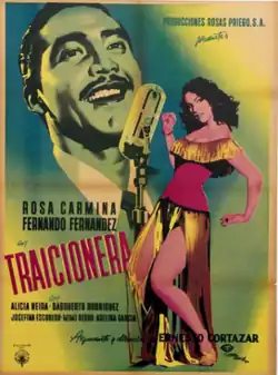 Treacherous (Spanish: Traicionera) is a 1950 Mexican drama film directed by Ernesto Cortázar and starring Rosa Carmina, Fernando Fernández and Dagoberto Rodríguez.[1][2] It is part of the wave of Rumberas films made during the Golden Age of Mexican Cinema. It was shot at the Azteca Studios in Mexico City. The film's sets were designed by the art director Jorge Fernández.