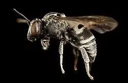 Triepeolus donatus is a species of cuckoo bee in the family Apidae.[1][2] It is found in North America, specifically in the United states and Canada.[1] They are characterized by a overall black body with white strips.[3]