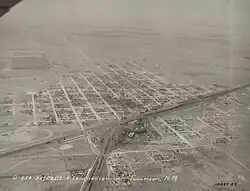 In 1901, the Chicago, Rock Island and Pacific Railroad built a construction camp in the western portion of modern-day Quay County. Originally called Ragtown, the camp became known as "Six Shooter Siding", due to numerous gunfights. Its first formal name, Douglas, was used only for a short time.[9] After it grew into a permanent settlement, it was renamed Tucumcari in 1908. The name was taken from Tucumcari Mountain, which is situated near the community.[10] The origin of the mountain's name is uncertain; it may have been derived from the Comanche word tʉkamʉkarʉ, which means "ambush".[11] A 1777 burial record mentions a Comanche woman and her child captured in a battle at Cuchuncari, which is believed to be an early version of the name Tucumcari.[9][12] A folk etymology for the town name claims that a Comanche saw a brakeman carrying a lantern and exclaimed "tukaʔ manoori!, carry the light!", which the brakeman heard as "tukama carry".[13]
