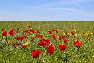 Tulips peninsula (Russian: Полуостров тюльпанов) is a tourist attraction which is situated near Orlovsky village, Rostov Oblast, Russia, in the valley of the Manych River. It is most visited in the second half of April during the mass flowering of tulips.[1]