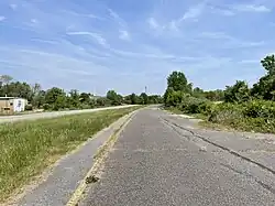 In 1950, recommendations were made by the chief engineer of the DSHD to widen US 13 into a divided highway between Delmar and Dover.[49] The divided highway was completed from Hearne's Mill north to just south of Greenwood in 1952. The highway bypassed Bridgeville to the east, rerouting US 13 off Main Street in that town.[50][51] In 1953, the divided highway portion of US 13 was built around Seaford.[52] The divided highway was completed between the Maryland border in Delmar and Hearne's Mill and from Harrington to Dover in 1954.[53][54][55] The new alignment of US 13 between Delmar and Hearne's Mill was built further to the east, with the former two-lane alignment running through Delmar, Laurel, Blades, and Seaford becoming US 13 Alt. The bypassed two-lane alignment between Canterbury and Camden was also designated as US 13 Alt.[55] In 1956, work was underway in widening US 13 into a divided highway between south of Greenwood and Harrington.[56] The widening of this portion of US 13 was finished in 1957, completing widening US 13 to a divided highway between Delmar and Wilmington.[41] By 1957, the former alignment of US 13 in Bridgeville along Main Street was designated US 13 Alt. (now US 13 Bus.) while US 13 Alt. between Delmar and Hearne's Mill was decommissioned.[57]