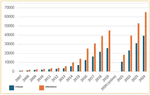 Attendance figures released by the organizers are published each year in their exhibitor pack.[27]