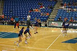The Texas–Arlington Mavericks volleyball team, historically one of the most nationally prominent teams on campus, is an NCAA Division I college volleyball team rejoined the Western Athletic Conference in July 2022. Home games are played at College Park Center, located on University of Texas at Arlington's campus in Arlington. The team has appeared in eight AIAW National Tournaments, nine NCAA Tournaments and three National Invitational Volleyball Championship Tournament, collecting 12 regular seasons titles and ten conference tournament titles along the way. The Mavericks ended the longest NCAA Tournament drought in program history by winning the 2024 WAC tournament. The previous appearance was in 2002.