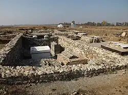 The Early Christian Basilica is a single-aisled basilica that was discovered in the 1950s. It is 33.5m long and 14m wide.[10] The basilica seems to have been built in five different phases and it is also known as "the church of martyrs" due to its presumed dedication to the martyrs Florus and Laurus. The basilica was built in the 6th century AD and it has a floor mosaic, which has not yet been revealed. Its southern wall has three columns, which suggest that the Basilica had a parecclesion at some point. The Early Christian Basilica may have been built to replace the Episcopal Basilica with Baptistry, which was damaged beyond repair by the 518 AD earthquake.[16]