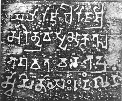 - ^ The rock inscription came into view when an old banyan tree was uprooted. (Sircar 1971, p. 79) The first report on the artifact was published by R. M. Nath (Sharma 1978, p. 1)
