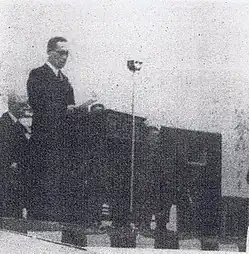 Upon promulgation of the Religious Organizations Law that forced the merger of all the Protestant churches in Japan to unite, a declaration of church unity was made at a mass meeting of Christians from all parts of Japan on 17 October 1940. The Kyōdan was established at a Founding General Assembly held at the Fujimicho Church (founded by Uemura Masahisa) on 24–25 June 1941.[5]