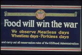 One of the agency's important tasks was the stabilization of the price of wheat on the U.S. market. Concepts such as "meatless Mondays" and "wheatless Wednesdays" were also implemented to help ration food, so that the government could prioritize the war effort.