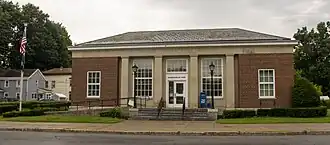 US Post Office-Dolgeville is a historic post office building located at Dolgeville in Herkimer County, New York, United States. It was built in 1939–1940, and is one of a number of post offices in New York State designed by the Office of the Supervising Architect of the Treasury Department, Louis A. Simon. It is a one-story, five bay building with a granite clad foundation, brick facades laid in common bond, and limestone trim in the Colonial Revival style. It features a slate-covered hipped roof on the front section. The interior features a 1940 fresco by artist James Michael Newell titled "Underground Railroad."[2]