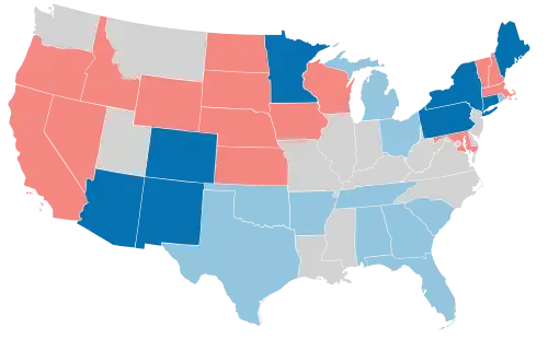 In the House, the Republicans lost eighteen seats to the Democratic Party, losing control of the chamber. Republicans would not retake the House until 1994.[2] The Republicans also lost control of the U.S. Senate, losing two seats to the Democrats.[3][4] Republicans would not retake control of the Senate until 1980.[5]