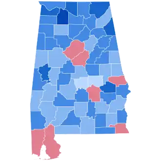 | Cullman | 12,961 | 64.63% | 6,899 | 34.40% | 109 | 0.54% | 26 | 0.13% | 60 | 0.30% | 6,062 | 30.23% | 20,055 |