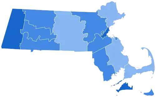 Kerry defeated George W. Bush in Massachusetts by 25%, a similar margin to that of Al Gore in 2000. He won every county and Congressional district easily. The 2004 Democratic National Convention took place at the TD Banknorth Garden, then called FleetCenter in Boston, the state capital.