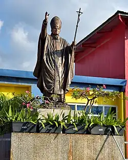 UCT's campus is located in Balide in the eastern part of Dili, at a property owned by the Archdiocese of Dili and formerly used by the Colégio de São José high school.[3][4][7] A statue of Pope John Paul II, the university's patron saint, stands at the entrance of the campus.[9] The university's Benedict XVI Library (Portuguese: Biblioteca Bento XVI) was inaugurated on 15 March 2023 in a ceremony attended by President José Ramos-Horta.[17] Donors to the library's collection included Prime Minister Xanana Gusmão, politician Paulo Remédios, and Ramos-Horta, who alone contributed 3,400 books.[17]