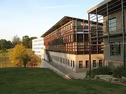 The Ivor Crewe Lecture Hall, one of the largest lecture theatres in the country hosting a 1,000-seat capacity, opened in 2006.[21][22] The building was designed by multi-award-winning architect Patel Taylor and attracted a mixed response; Prince Charles referred to it as 'like a dustbin'[23] whilst the Civic Trust, a charity of which he is patron, awarded it a Civic Trust award (2008) for making 'an outstanding contribution to the quality and appearance of the environment'.[24] The building was named after Sir Ivor Crewe in April 2007 to mark his retirement from the position of vice chancellor, a position he chaired since 1995.[25]