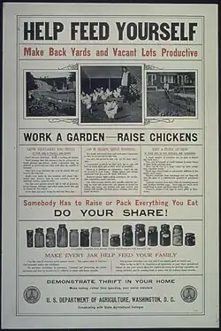 Early urban horticulture movements majorly served the purposes of short term welfare during recession periods, philanthropic charity to uplift "the masses" or patriotic relief.[5] The tradition of urban horticulture mostly declined after World War II as suburbs became the focus of residential and commercial growth. Most of the economically stable population moved out of the cities into the suburbs, leaving only slums and ghettos at the city centers. However, there were a few exceptions of garden projects initiated by public housing authorities in the 1950s and 1960s for the purpose of beautification and tenant pride.[4] But for the most part as businesses also left the metropolitan areas, it generated wastelands and areas of segregated poverty.