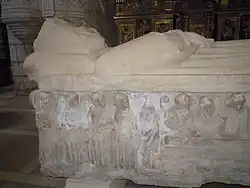 In 1213, count Álvaro Núñez de Lara, married to Queen Urraca's niece, Urraca Díaz de Haro gave her several properties in La Bureba,[6] with which she later founded, in 1222, the Monastery of Santa María la Real in Vileña, entrusting its governance to the Cistercians. Although she was not the abbess of this monastery, she became a nun and was buried in a sepulcher made of stone placed in the presbytery of the church at the monastery that was transferred subsequently to the Museum in Vileña after the monastery was destroyed by fire in 1970 and then again to the Museum of Burgos.[7]