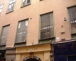 - ^ a b c d e Glase, Béatrice; Gösta Glase (1988). "Västra Stadsholmen". Gamla stan med Slottet och Riddarholmen (in Swedish) (3rd ed.). Stockholm: Bokförlaget Trevi. pp. 58, 76. ISBN 91-7160-823-0.