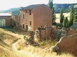 Another religious construction is called the 'Casa del Cordón, as evidenced by the umbilical cord[10] and San Francisco shields which are on its façade in plateresque style, reminiscent of the passing of the Franciscan order through the town.[8] At present it still belongs to the Catholic Church and both its exterior and its interior have deteriorated with the passage of time.[10] There is also an emblazoned civil building, now privately owned, built in ashlar masonry, with a heraldic shield on the façade and arched windows. It is believed that the construction consisted of a large utility building, possibly a hospital or care facility.