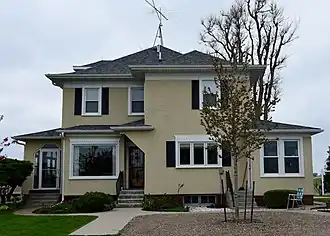 The Vander Wilt Farmstead Historic District, also known as the Heritage House Bed and Breakfast, is an agricultural historic district located north of Leighton, Iowa, United States. At the time of its nomination it included three contributing buildings, three contributing structures, one non-contributing building, and two non-contributing structures.[2] The significance of the district is attributed to its association with progressive farming and the Country Life Movement, which sought to improve the living conditions of rural residents.[2] The contributing buildings include the 1904 barn, the house (1920), the corn crib (1953), dairy barn (1955) and the feed lots. The two-story house was built by Douwe Sjaardema, a contractor from Pella, Iowa. The corn crib was built by the Iowa Concrete Crib & Silo Co. of Des Moines. The farm also includes a former landing strip for airplanes. It featured a 1,500-foot (460 m) grass runway where cows grazed on certain days.[2] At one time it had a windsock and homemade landing lights. A hangar, no longer in existence, had been built in 1955. An automobile garage and two silos are the non-contributing resources. The district was listed on the National Register of Historic Places in 2004.[1] The 1904 barn has subsequently been torn down.