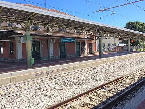 Varese Casbeno railway station (Italian: Stazione di Varese Casbeno) serves the neighborhood of Casbeno in the city of Varese in Lombardy, northern Italy. It is located on the Saronno–Laveno railway. The station is managed by Ferrovienord.