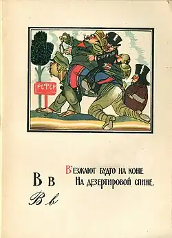 Both Ve and the Cyrillic letter Be (Б б) were derived from the Greek letter Beta (Β β), which already represented /v/ in Greek by the time the Cyrillic alphabet was created.[2]