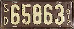 The U.S. state of South Dakota first required its residents to register their motor vehicles in 1905. Registrants provided their own license plates for display until 1913, when the state began to issue plates.[2]