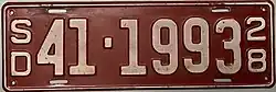 - ^ "Old South Dakota License Plates". LeatherLicensePlates.com. Retrieved July 21, 2017.
