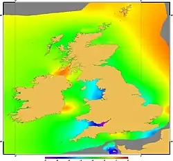 The VORF project ran from 2005 as a collaborative research project, sponsored by the UKHO, with a consortium comprising Proudman Oceanographic Laboratory, DTU, and led by University College London.[9] It was delivered to the UKHO in 2008. VORF was developed using satellite altimetry, tide gauge observations, geoid and tidal modelling, and GNSS observations.[10][11] VORF meets its target inshore accuracy of 10 cm in most of the domain of applicability.[12]