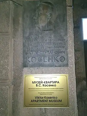 The Victor Kosenko Apartment Museum (Ukrainian: Музей-квартира Віктора Косенка) is a museum in Kyiv, Ukraine, which memorializes the life of Victor Kosenko, who was a prominent Ukrainian musician, teacher, and public figure in the early 20th century. The museum opened in 1938, the year of his death, and is housed in the building in which Kosenko lived in the last few months of his life from 11 May 1938 to 3 October 1938.[1]