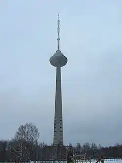 The Vilnius TV Tower (Lithuanian: Vilniaus televizijos bokštas) is a 326.5 m (1,071 ft) high tower in the Karoliniškės residential district of Vilnius, Lithuania. It is the tallest structure in Lithuania, and the 29th tallest self-supporting tower in the world. It belongs to the SC Lithuanian Radio and Television Centre (Lithuanian: AB Lietuvos radijo ir televizijos centras).